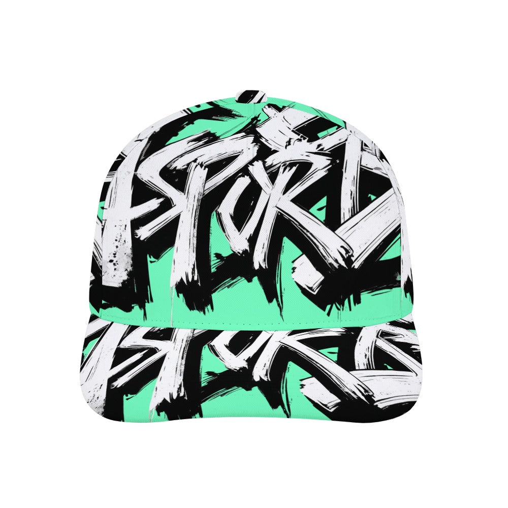 Cappello donna della collezione MOMO Bloom, progettato per completare i tuoi outfit streetwear con un tocco di colore fresco. La base verde lime cattura subito l’attenzione, mentre la stampa bianca contornata di nero che ricopre tutto il cappello richiama le grafiche della felpa e della t-shirt abbinata della collezione, creando un look coordinato e vivace.