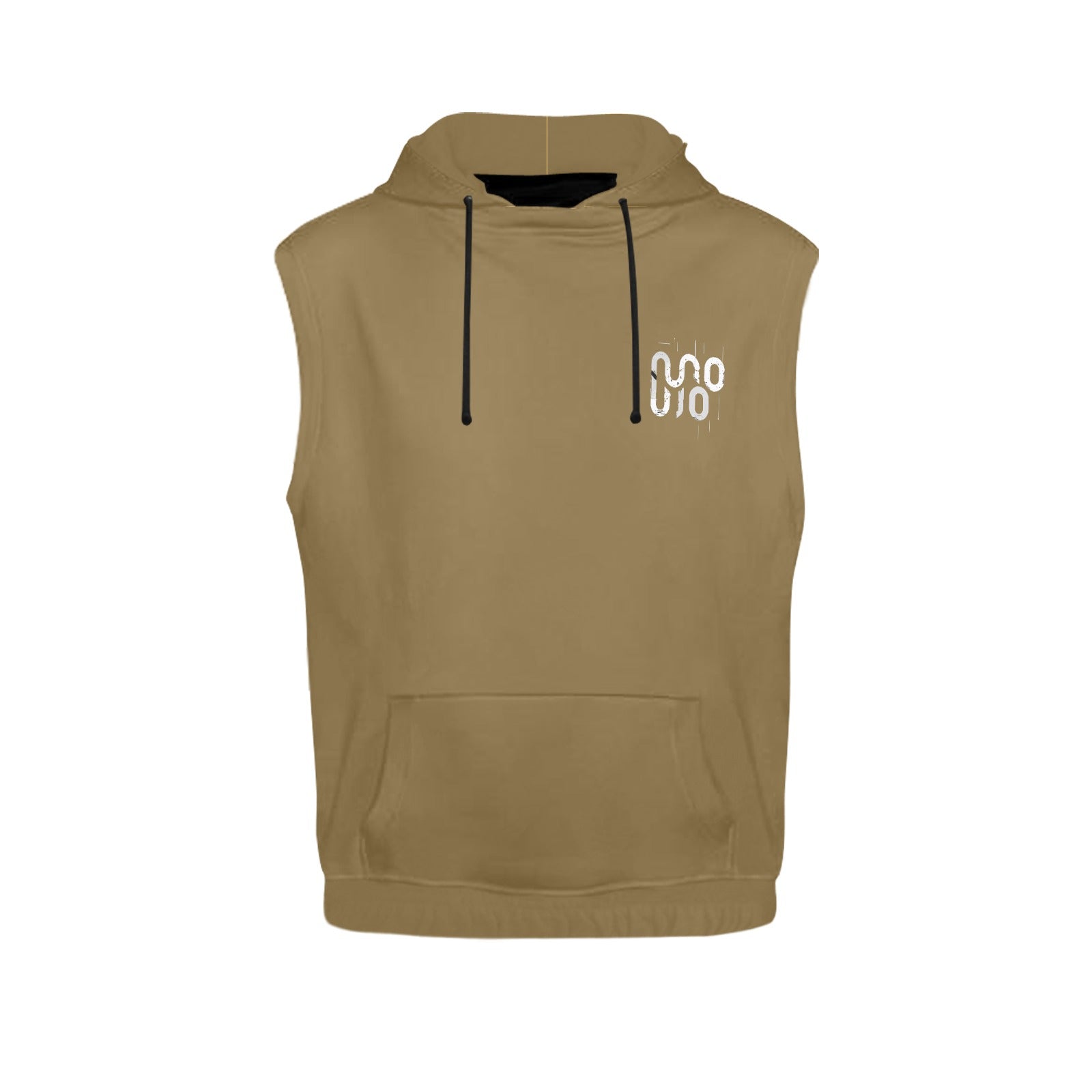 Felpa con cappuccio senza maniche in poliestere 94% e spandex 6% della collezione Concrete Echoes modello Urban Soil colore marrone chiaro con logo Concrete Shoes lato cuore piccolo design senza maniche con cappuccio regolabile coulisse e tasca frontale a marsupio elastico in vita un capo streetwear versatile perfetto da abbinare alla maglietta e ai pantaloni Urban Soil per un outfit urbano completo e coordinato