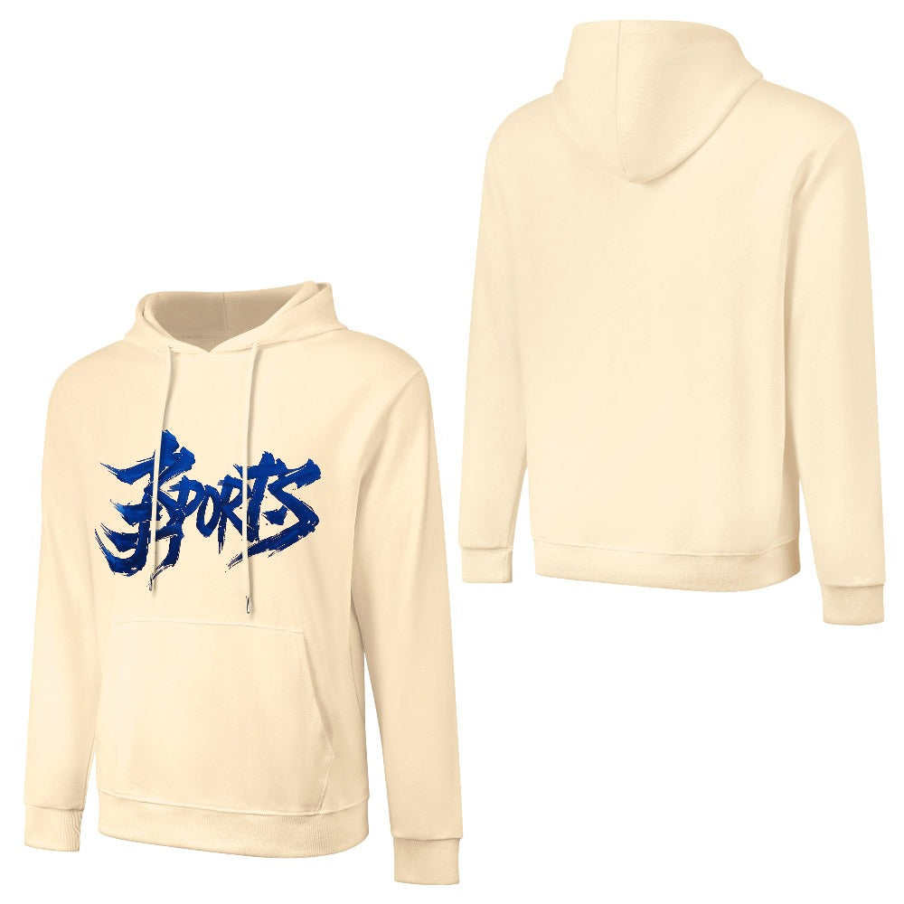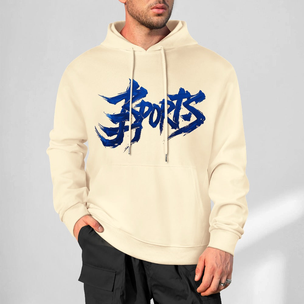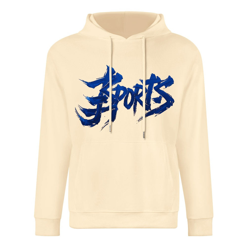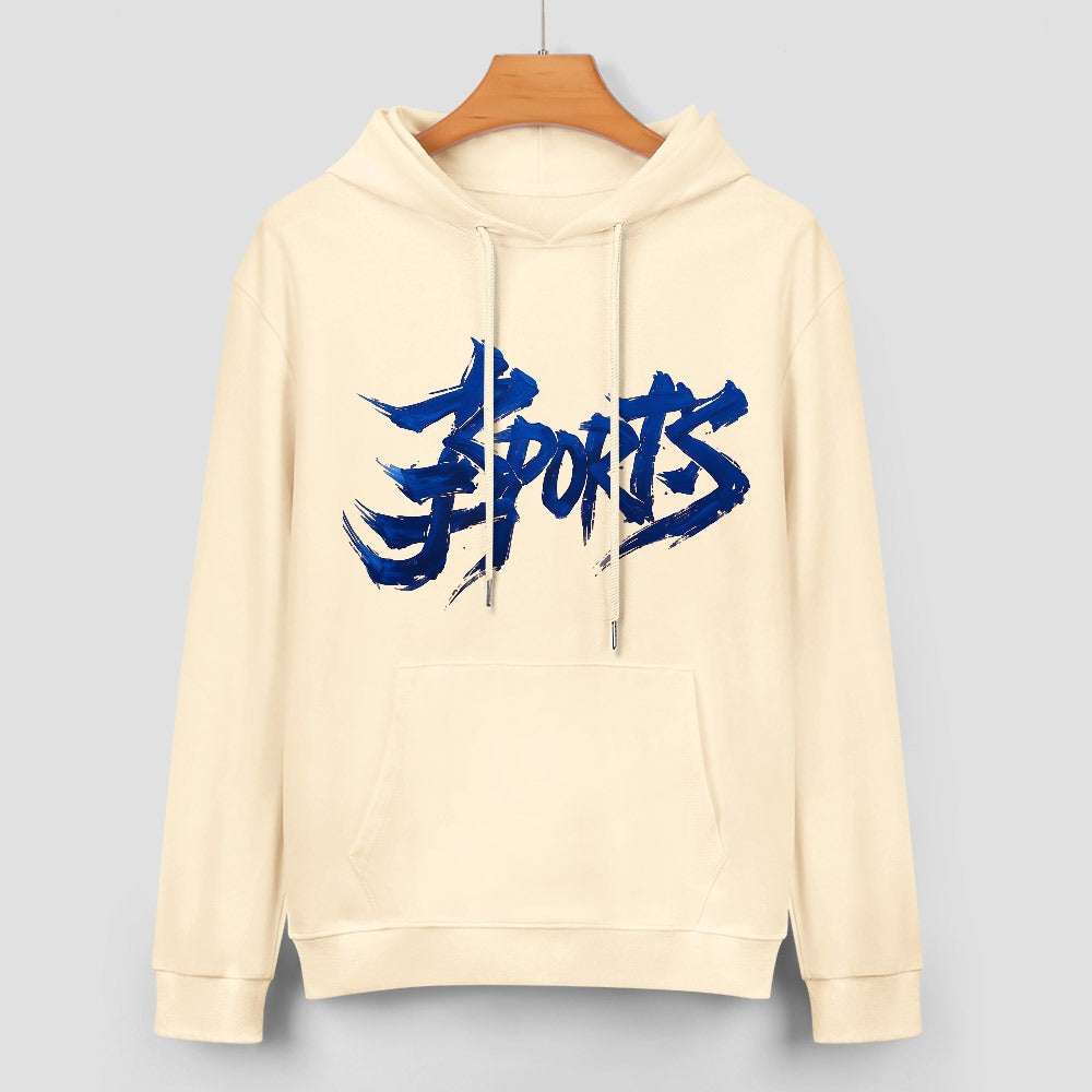 Design: felpa con cappuccio in albicocca chiaro “Apricot Fade”, caratterizzata da una scritta centrale in stile graffiti sfumata dal blu chiaro al blu scuro, creando un effetto moderno e accattivante.