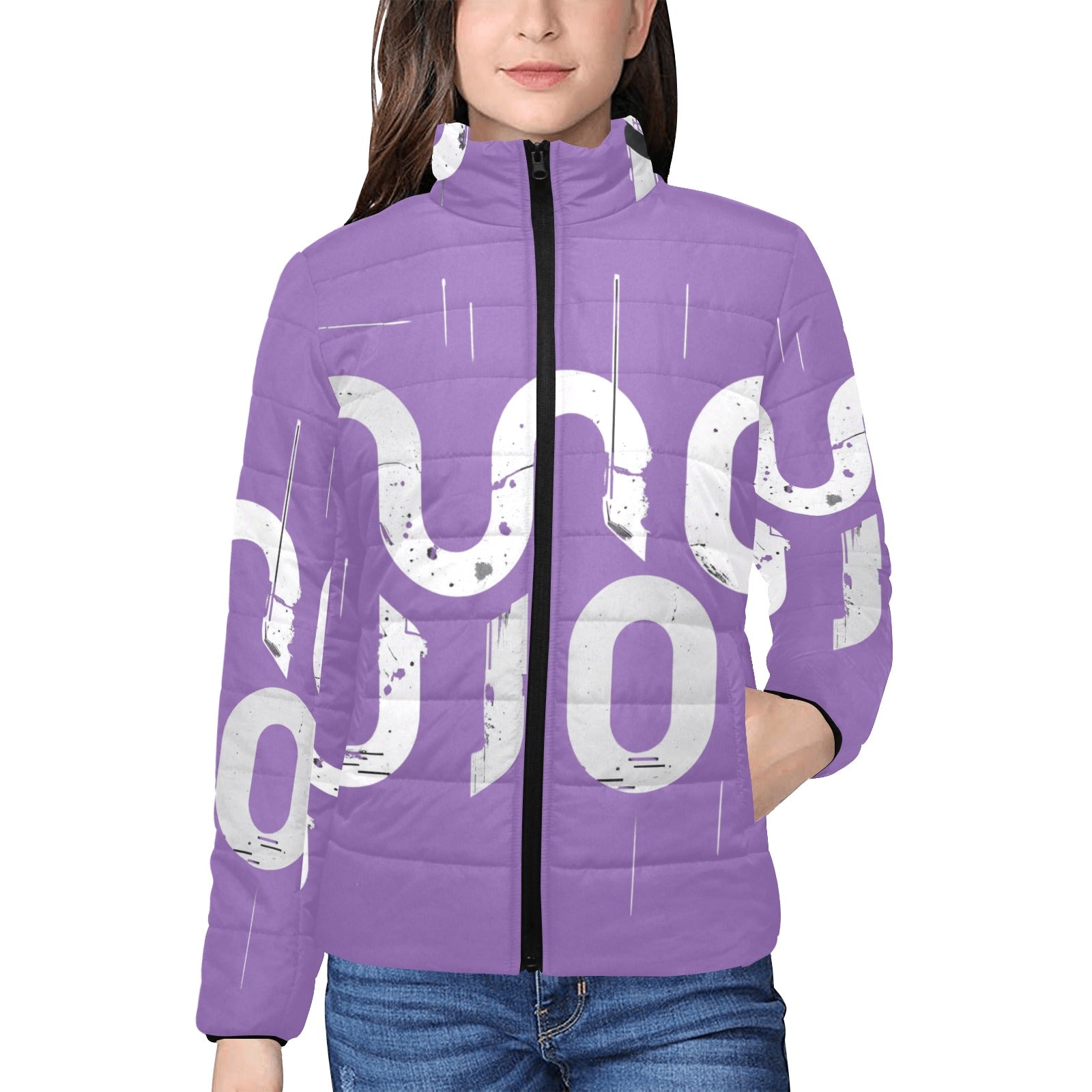 Giacca imbottita donna della collezione Concrete Echoes “Urban Static” in versione viola con grande logo bianco all-over, un capo che unisce stile urbano e streetwear contemporaneo. Il design trapuntato con colletto rialzato garantisce comfort e praticità, mentre la stampa esclusiva del logo rende la giacca distintiva e immediatamente riconoscibile. Leggera ma calda, ideale per affrontare l’autunno inverno con un look originale e audace.