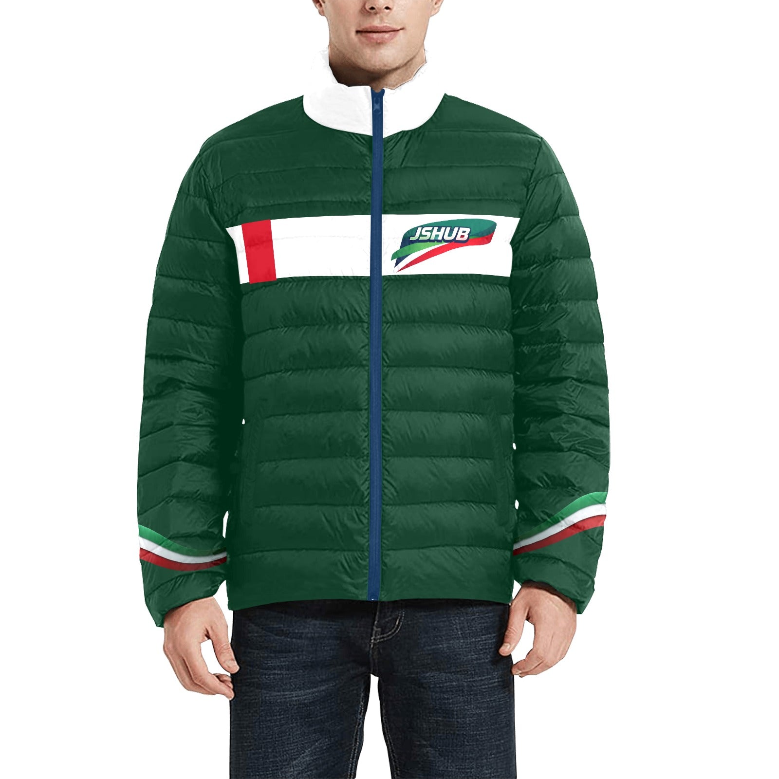 Scopri il Piumino Bomber Italy Uomo della collezione JSHUB Winter Nation 2026 ispirato all’energia dei Giochi Invernali Milano Cortina 2026 una giacca bomber leggera base verde scuro con inserti tricolore pensata per completare il total look Italy Uomo con un forte impatto streetwear realizzata in 100% poliestere con stampa all over e lavorazione trapuntata garantisce comfort leggerezza e calore ideale per le stagioni intermedie e per l’inverno urbano il design con colletto standard chiusura con zip frontale polsini elasticizzati e due tasche laterali unisce funzionalità e stile contemporaneo ogni pannello è tagliato e cucito con precisione per valorizzare la grafica e assicurare una resa visiva impeccabile perfetto per outfit quotidiani viaggi tempo libero e utilizzo outdoor un capo essenziale per rappresentare l’Italia in chiave moderna dinamica e competitiva